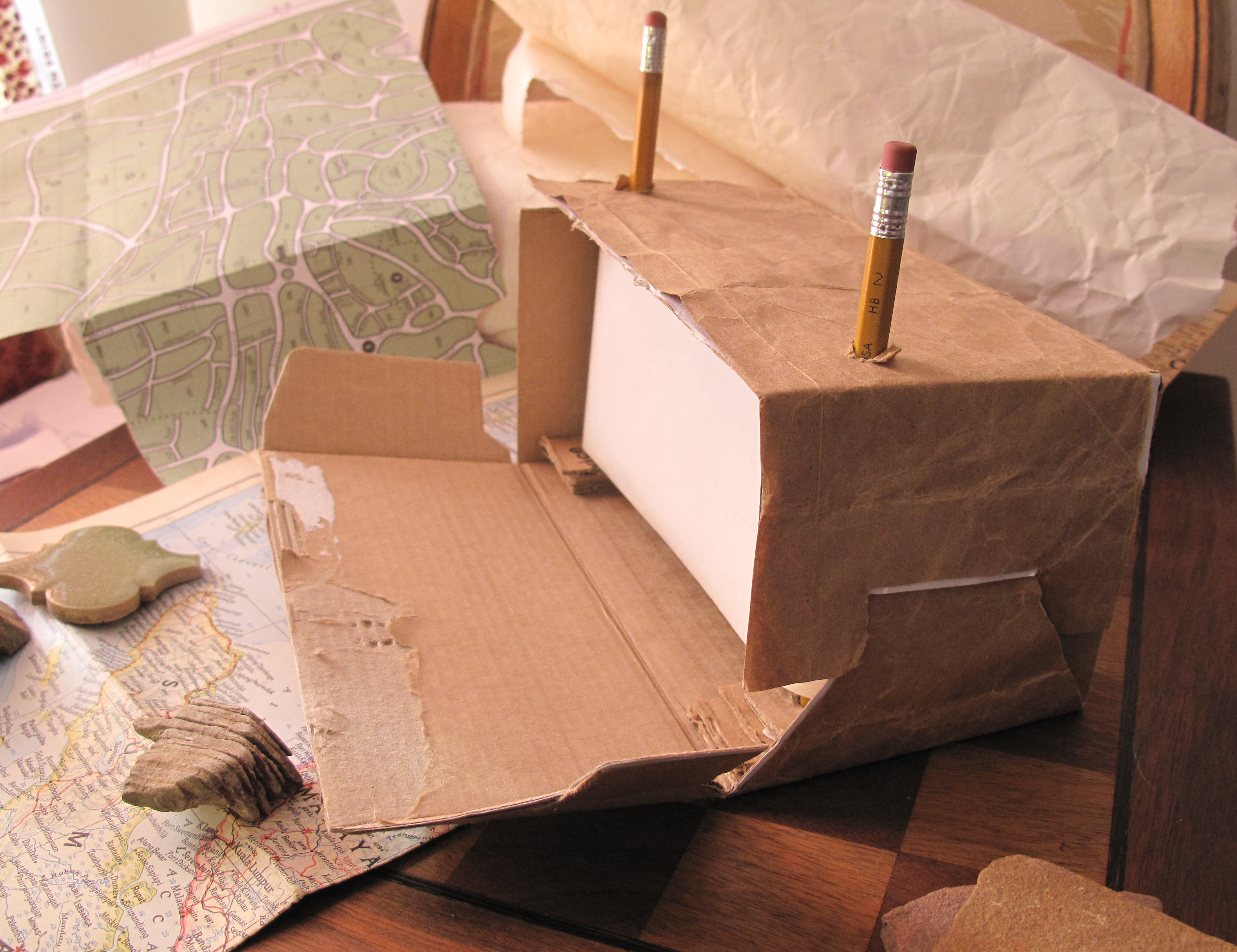 Conceived and created by Claire Moodey, < the invisible draft > is a radio play silent movie. It is a multi-media theater piece inspired by Italo Calvino’s novel Invisible Cities where the seated audience is invited wander through the map of consciousness, riding the sine waves conducted by Our Man of the World and the Girl with a Backpack.